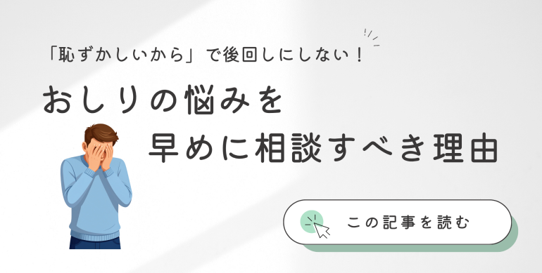「なんだかおしりが痛い」「トイレットペーパーに血がついている気がする…」そんなとき、「まあ大丈夫だろう」と様子を見てしまう方は少なくありません。