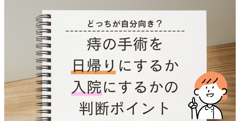 この記事では、痔手術における “日帰り手術” と “入院手術” の違いを徹底的にわかりやすく整理しました。